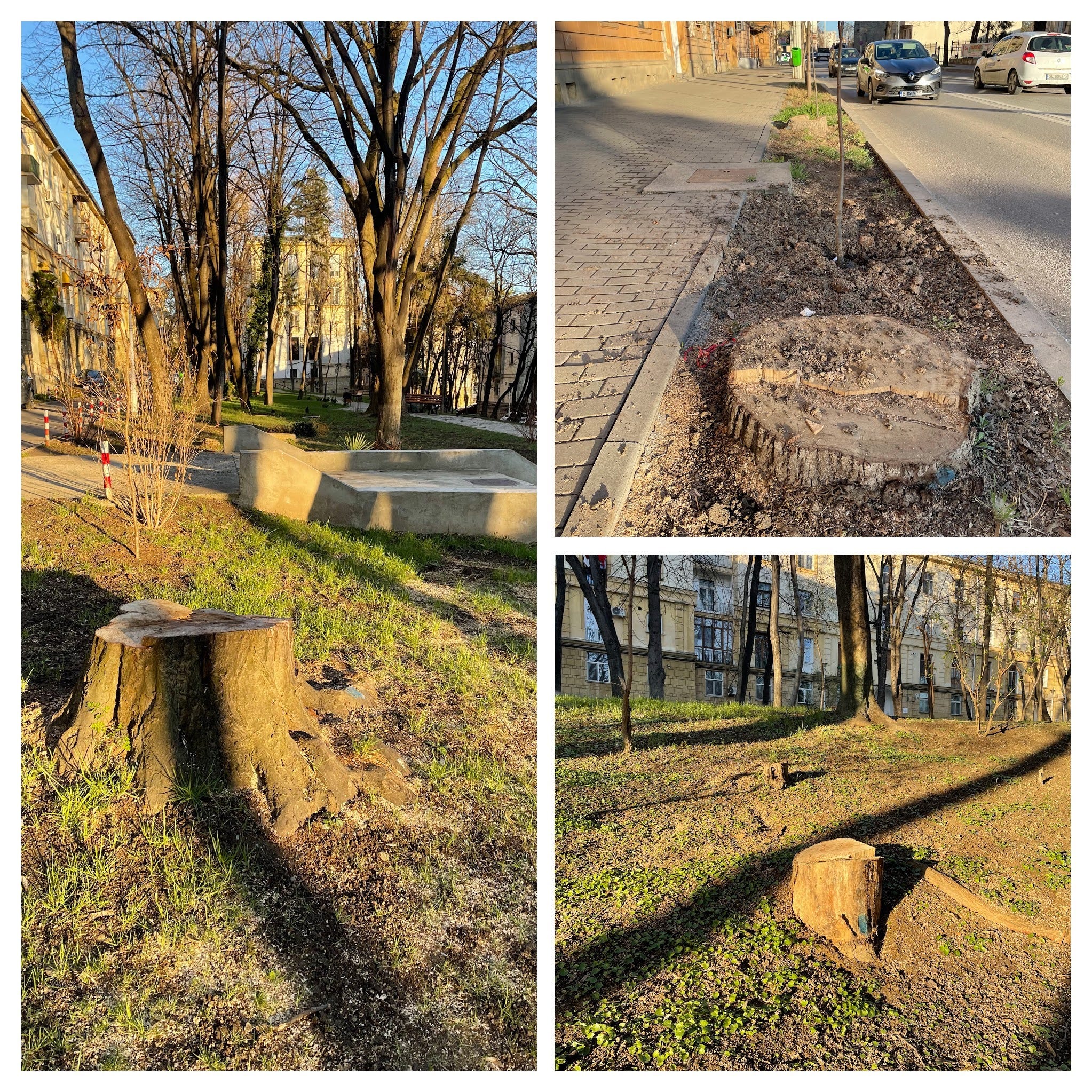 În fiecare iarnă, lucrătorii de la Servicii Publice Iași descind la noi în cartier, ne ușurează de 15-20 de arbori maturi și pun ceva gazon/arbuști în locul lor.