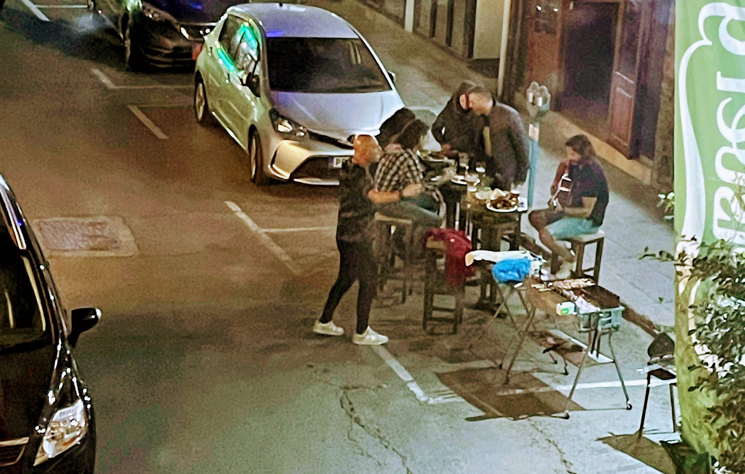 În ultima seară, băieții de la pubul de vizavi au scos câteva mese pe alee, au pus de-un grătar și au cântat folk grecesc, iar acum nu mai pot să-mi scot din cap melodia asta. Efharisto!