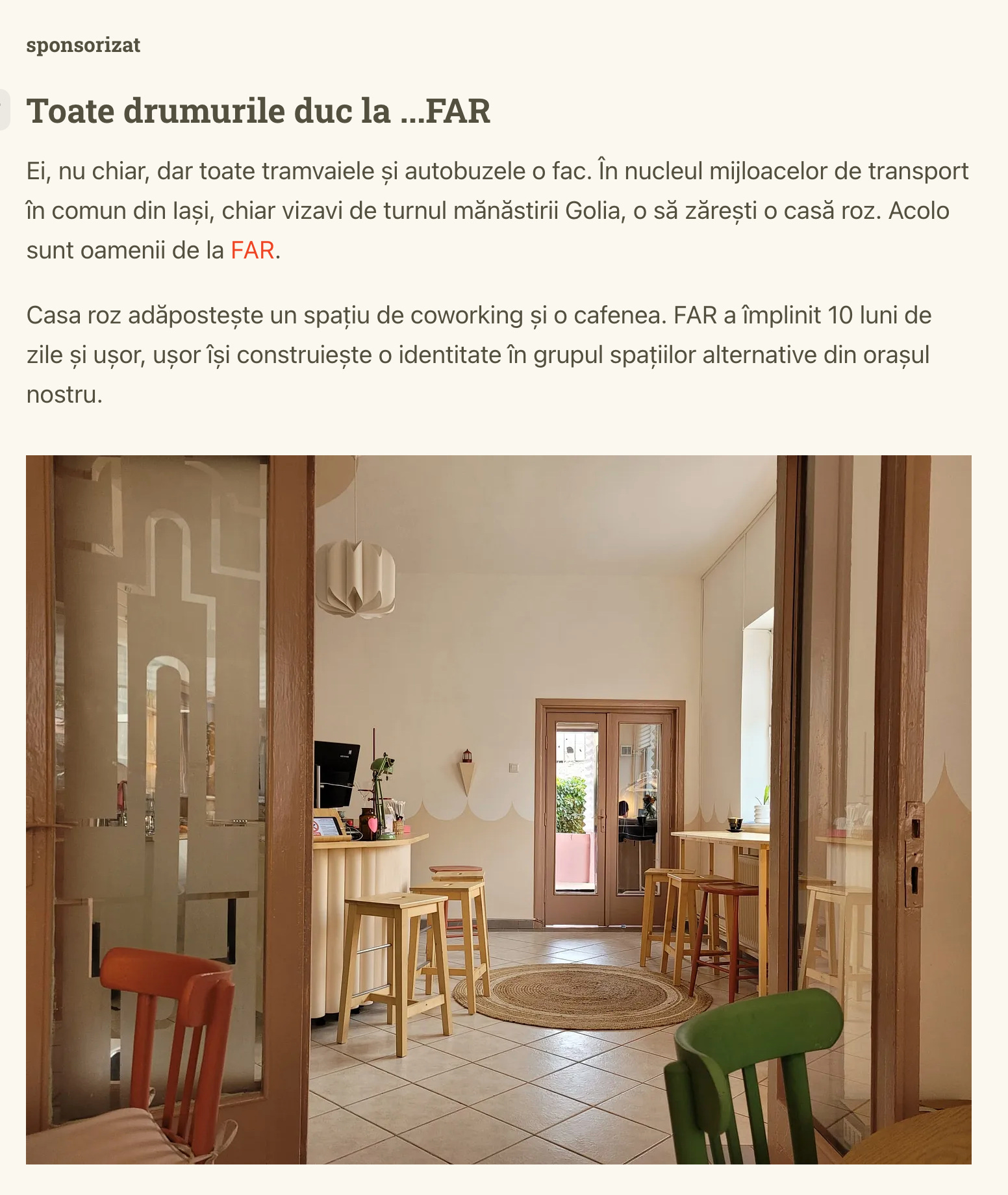 Fie că ești antreprenor local sau reprezinți o companie multinațională care operează în Iași, ne-am bucura să devenim parteneri și să creăm conținut autentic pentru ieșenii cărora le pasă de orașul în care trăiesc.