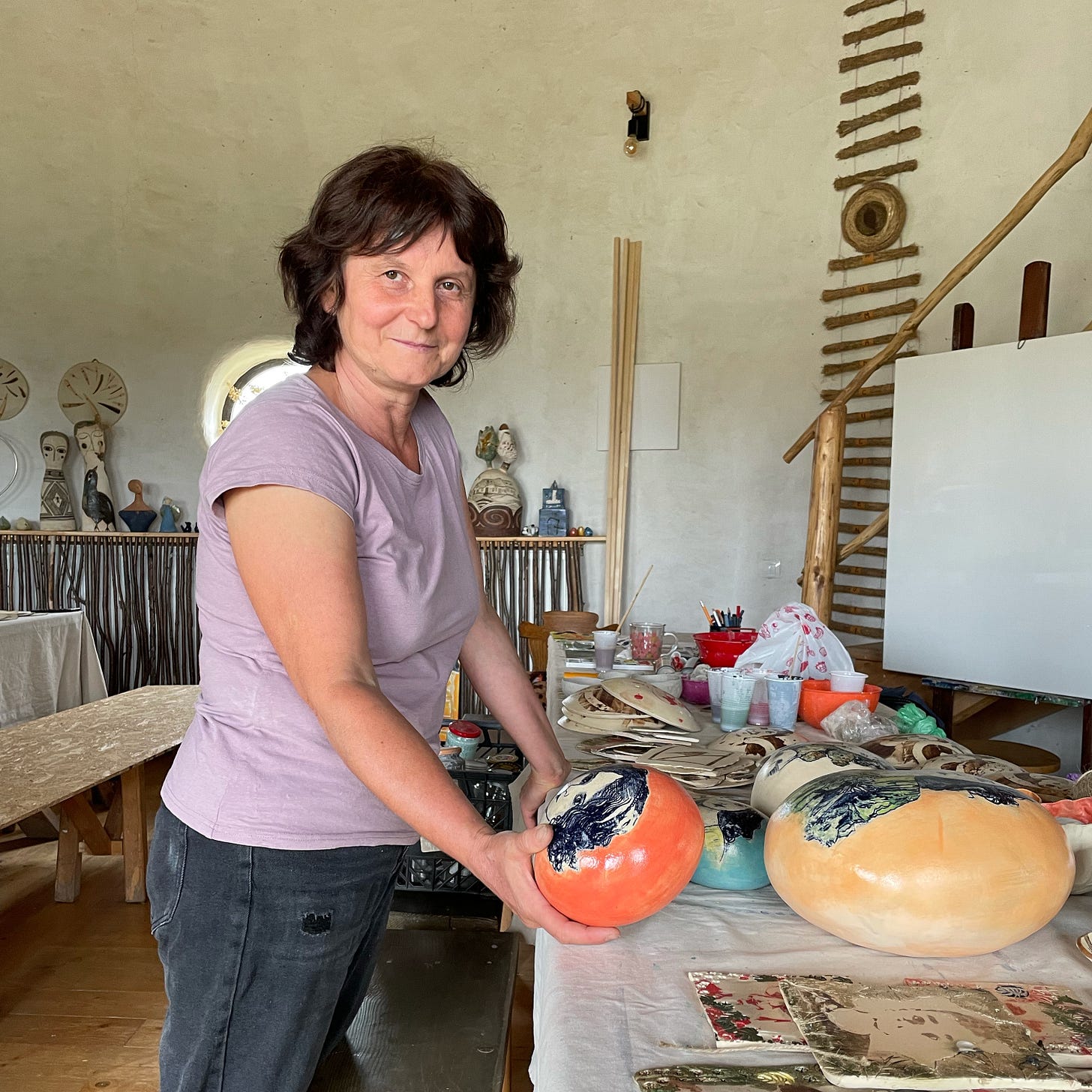 Ionela-Sandrina Mihuleac găzduiește în casa și atelierul ei din Cucuteni un simpozion de artă și workshop-uri pentru copiii din sat