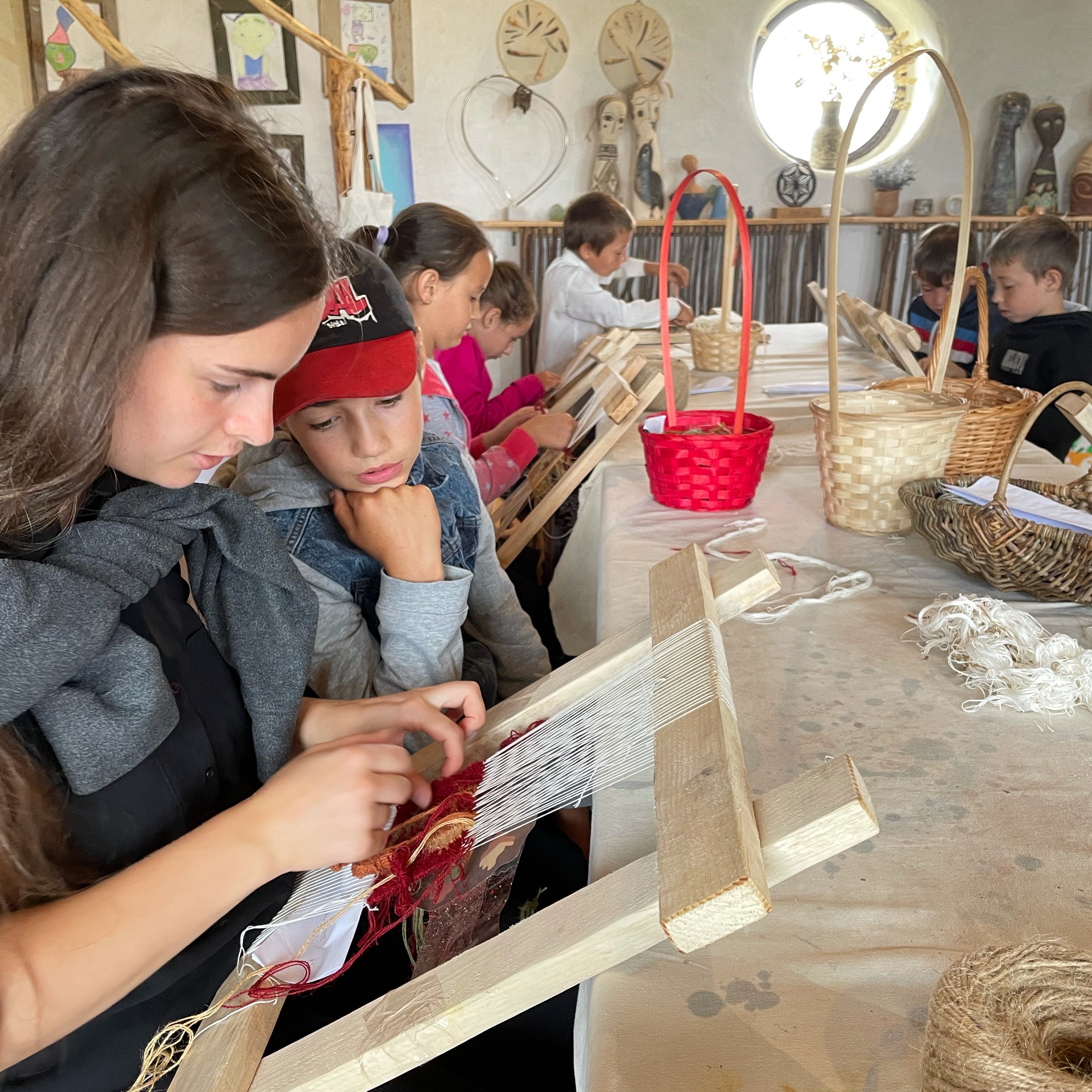 Când am ajuns eu, o grupă de zece copii țesea în liniște sub îndrumarea a două restauratoare de la Muzeul de Etnografie din Chișinău, iar Georgiana Dimitrescu și Vlad Mărculescu, balerini la Opera din Iași, plănuiau un dans pentru copiii din tura de seară.